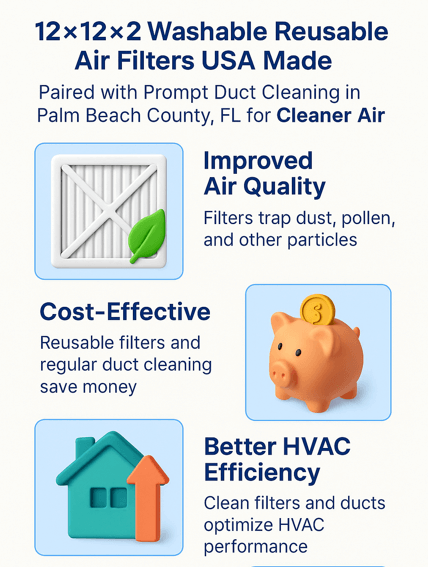 12×12×2 Washable Reusable Air Filters USA Made Combined with Prompt Duct Cleaning in Palm Beach County FL for Cleaner Air